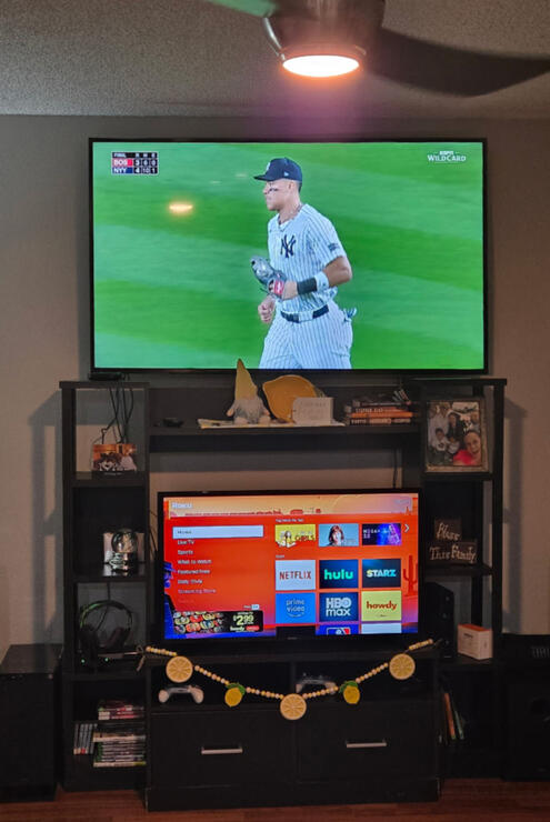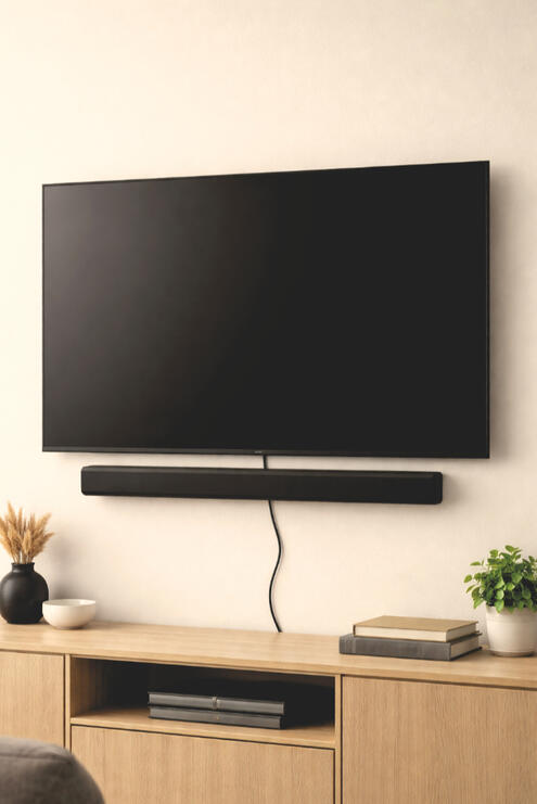 Mounted directly below your TV for a clean, balanced setup.