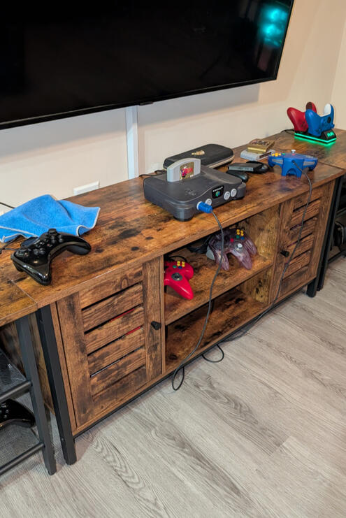 Secure shelves for consoles, cable boxes, or décor.
